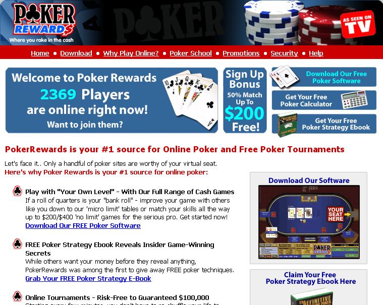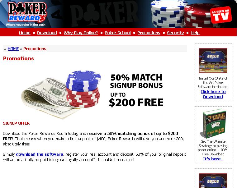 50% bonus offer up to $200 FREE at Poker Rewards today