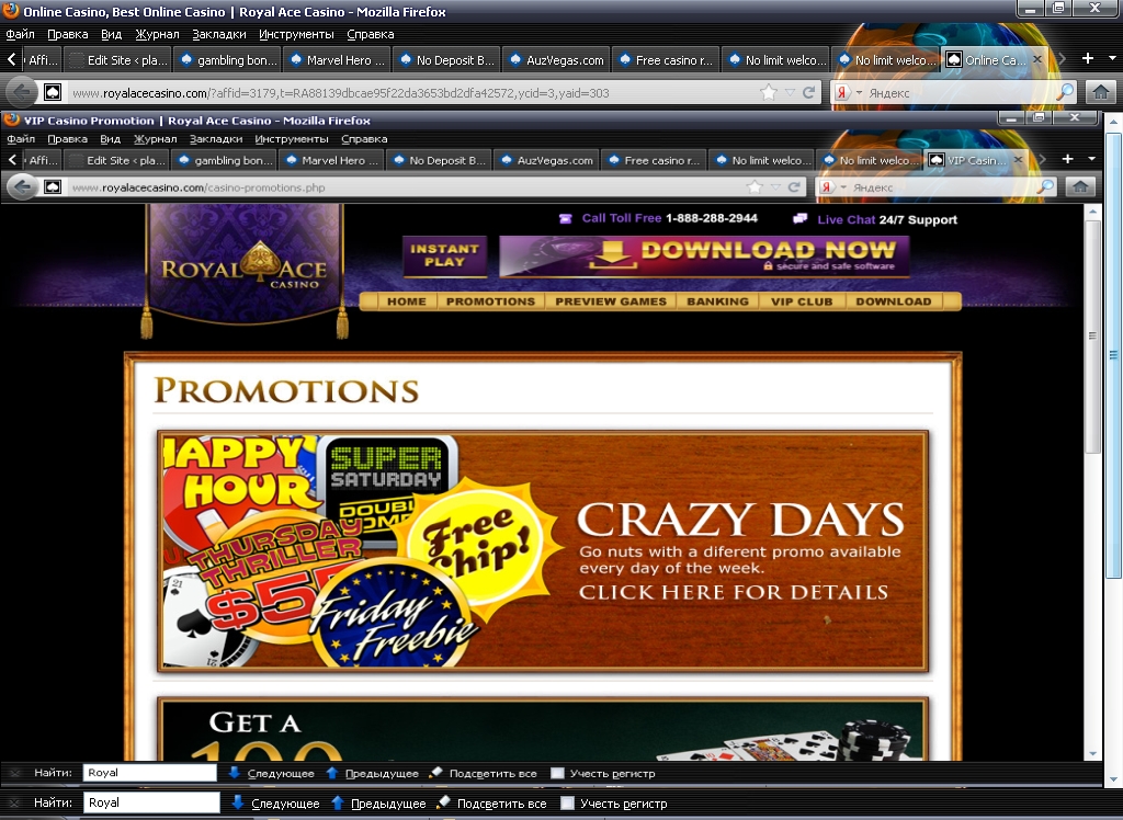 One of the biggest promotions at the Royal Ace Casino is the site’s VIP Program which has seven levels. This allows players to earn comp points as they wager $10. Members of the VIP club also get to access special promotions and bonuses that are exclusive to them.