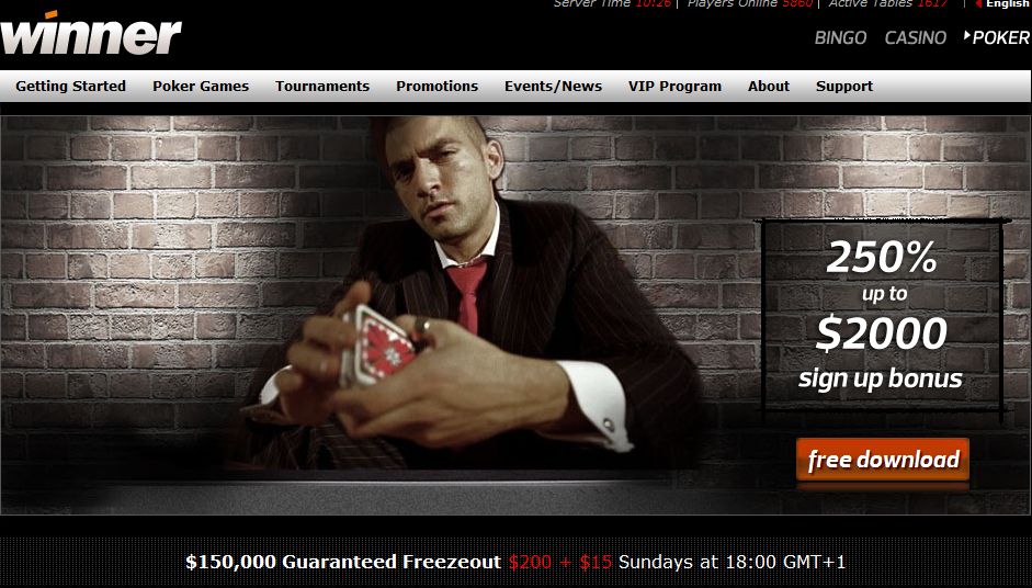 Winner Poker is powered by the online gaming software provider, Playtech. Play is available in multiple languages including English, French, German, Spanish and Swedish. Players can choose from a number of variations of poker, including Texas hold’em, Omaha, Omaha hi-lo, five card stud and seven card stud.